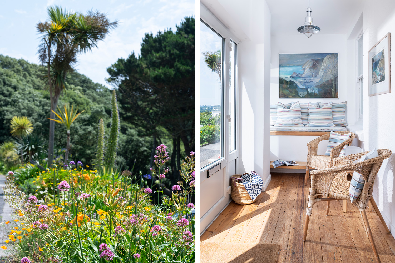 Some photos of the wonderful views at different times of the day across the bay from our stay at Coastguards near Pendennis Point, July 2021. From the vibrant colours to the tropical plants, we truly felt as though we were abroad! Inspiring!