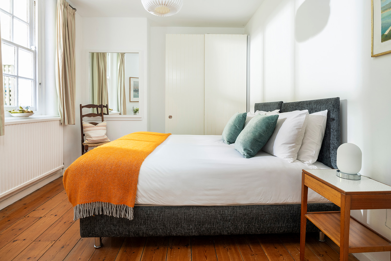 The design conscious owners have carefully crafted this well equipped, yet minimalistic style abode for you to enjoy a Falmouth holiday home, which is yards from the beach and you are just moments away from warm, moonlit, evening strolls along the seafront. Falmouth town centre is a gentle ten-minute stroll away, where there are many great, independent restaurants serving fresh, local produce, so please be excused from not cooking on your holiday!